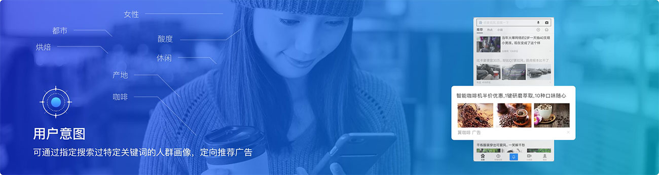 基于消費(fèi)者的搜索習(xí)慣,人群畫像、定位等信息,不同的用戶畫像,系統(tǒng)將自動匹配不同廣告內(nèi)容,千人千面,更加契合用戶的搜索需求